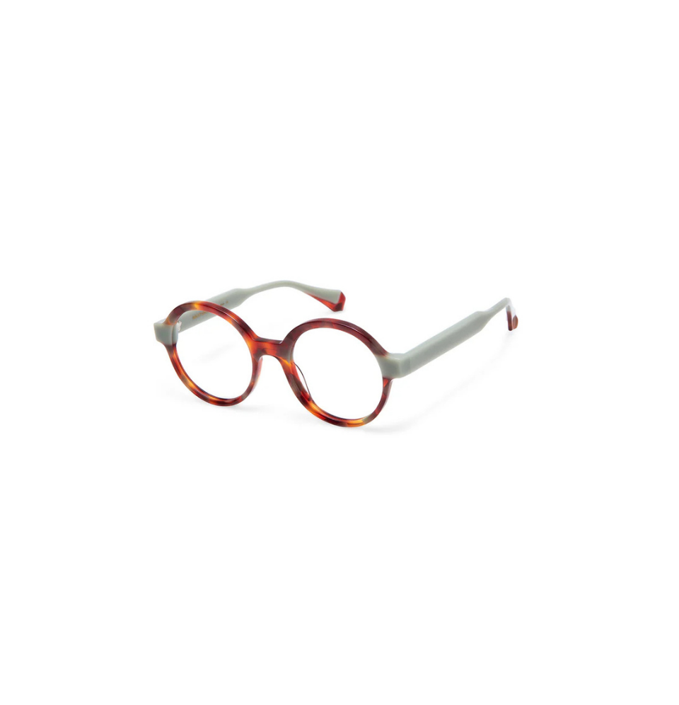 Un modello da donna con montatura realizzata a mano in acetato di provenienza italiana di altissima qualità. ROXANE ha uno stile retrò e una forma rotonda.