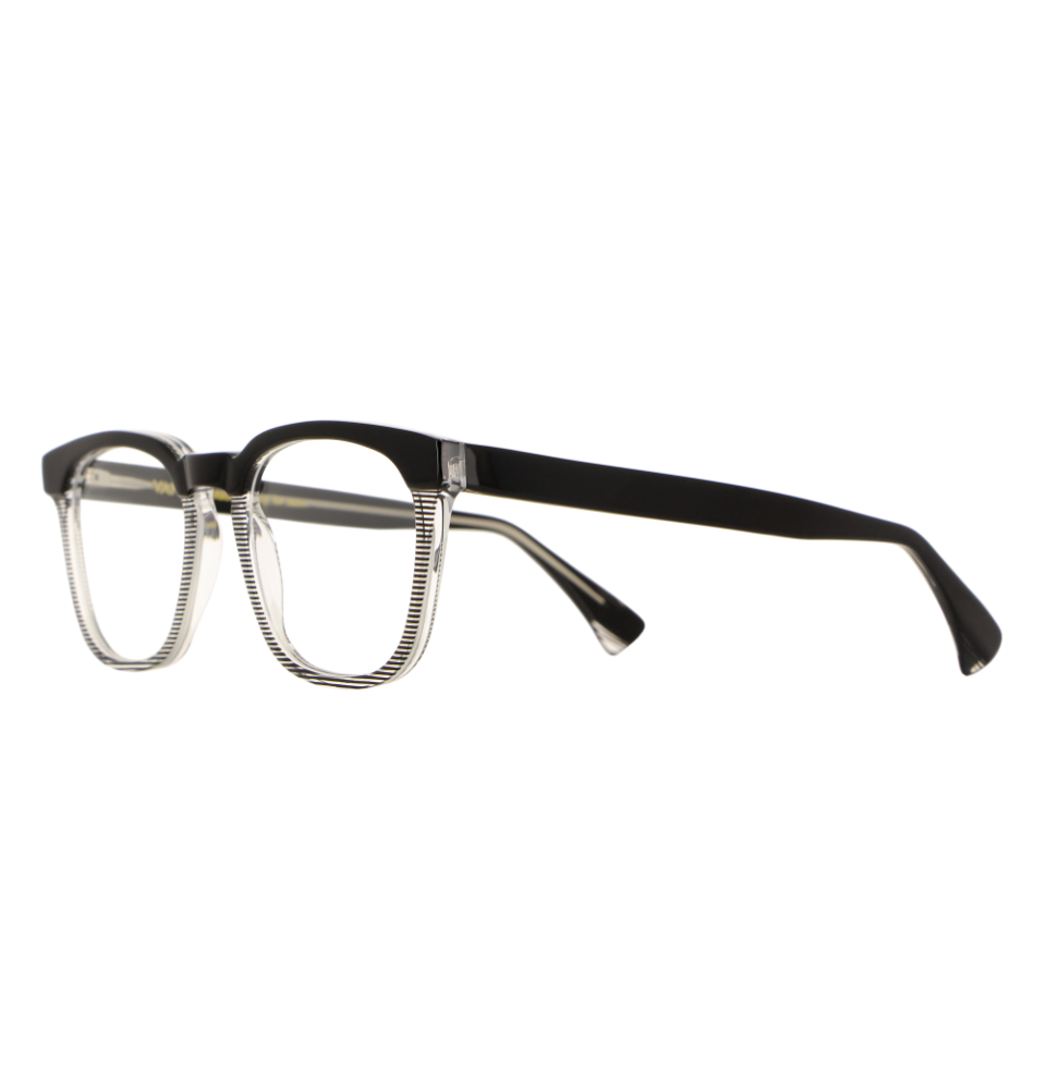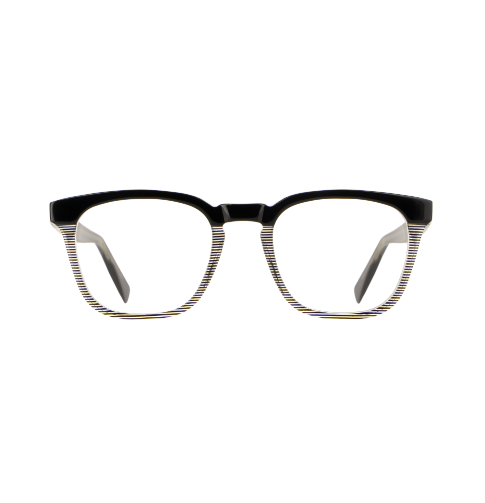 Questo design geometrico regala un effetto di misurata singolarità sulla montatura bicolore.