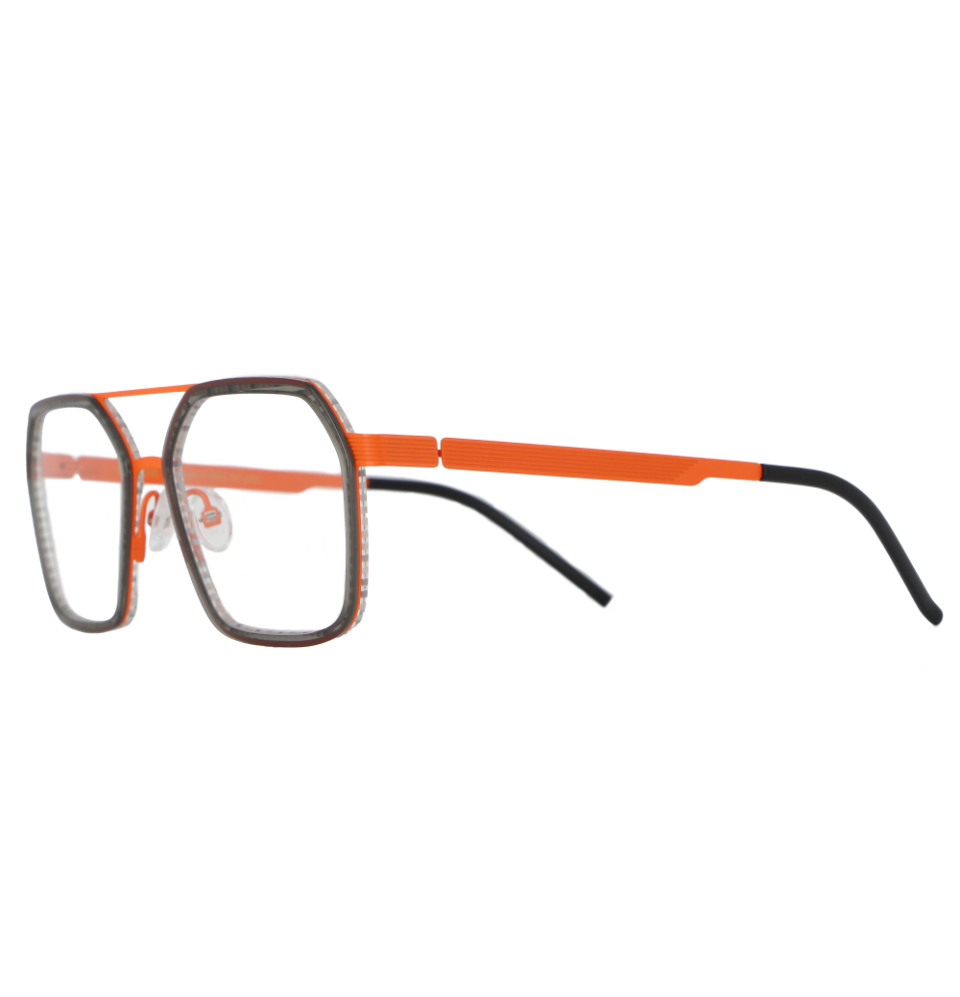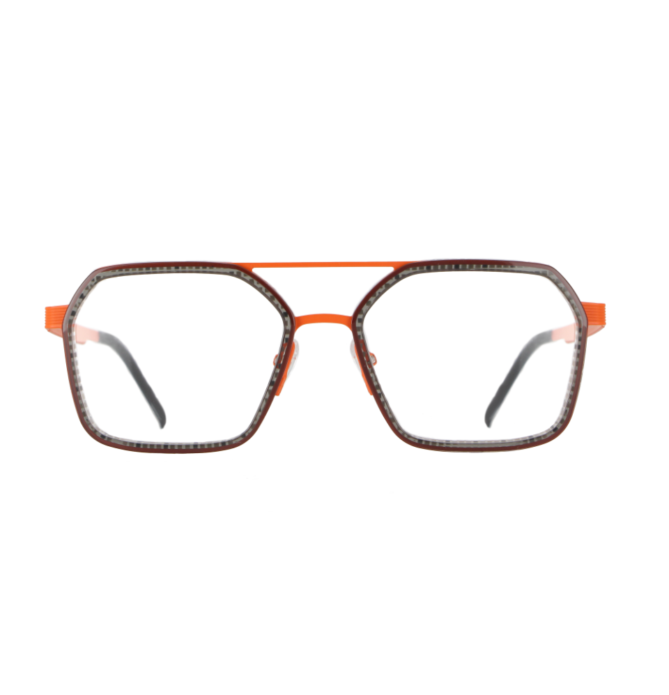 Questo design geometrico regala un effetto di misurata singolarità sulla montatura bicolore.